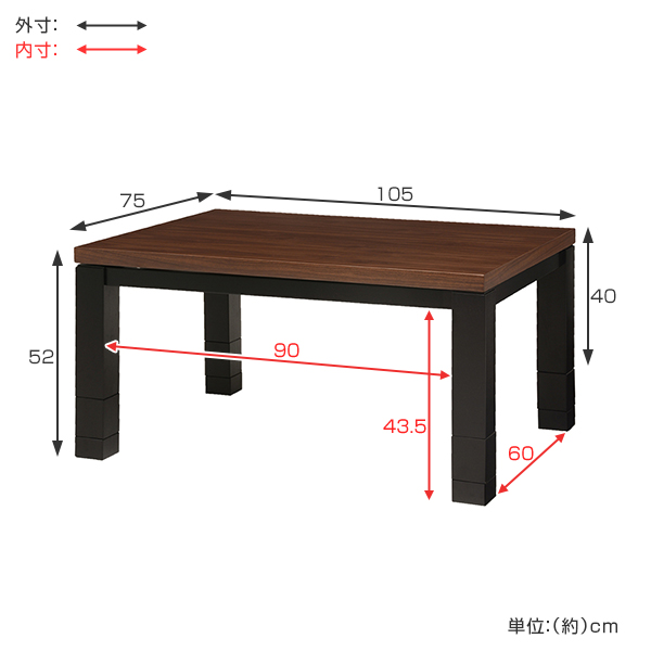 家具調こたつ リビングコタツ ウォールナット ジェスタ 幅105cm ( コタツ 炬燵 ローテーブル デスク こたつテーブル 薄型ヒーター 2WAY オールシーズン 継ぎ足 継脚 座卓 おしゃれ センターテーブル 手元コントローラー )