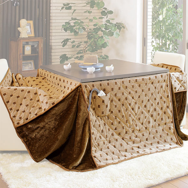 《 LH3240 フトン 可愛い かわいい あったか シンプル ナチュラル ドット 茶 ブラウン ポケット付き ダイニング デスクこたつ 省スペース 90センチ 》