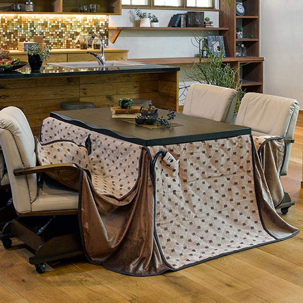 《 LH3240 フトン 可愛い かわいい あったか シンプル ナチュラル ドット 茶 ブラウン ポケット付き ダイニング デスクこたつ 省スペース 135センチ 140センチ 140cm 》