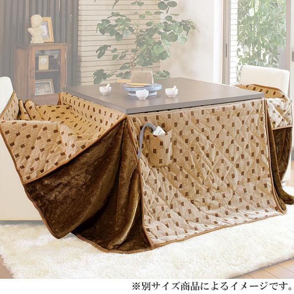 《 LH3240 フトン 可愛い かわいい あったか シンプル ナチュラル ドット 茶 ブラウン ポケット付き ダイニング デスクこたつ 省スペース 90センチ 》