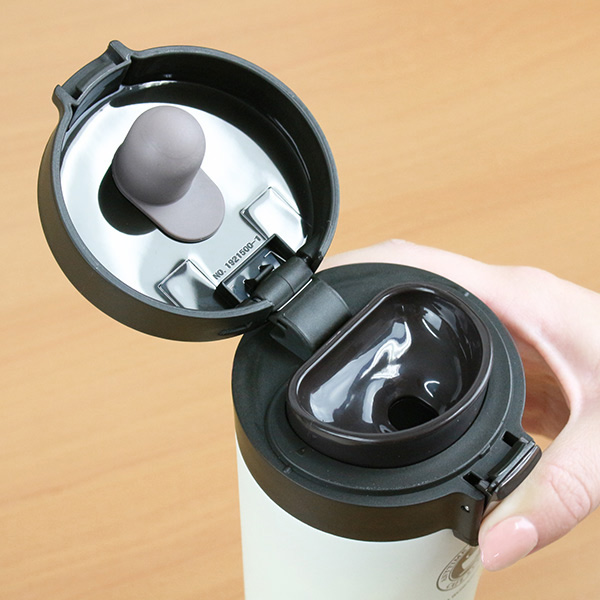 蓋はワンタッチで開閉できるので、片手ですぐに飲むことができます。また、ロックが付いているので、カバンの中で勝手に開くことがなく安心して持ち運びできます。
