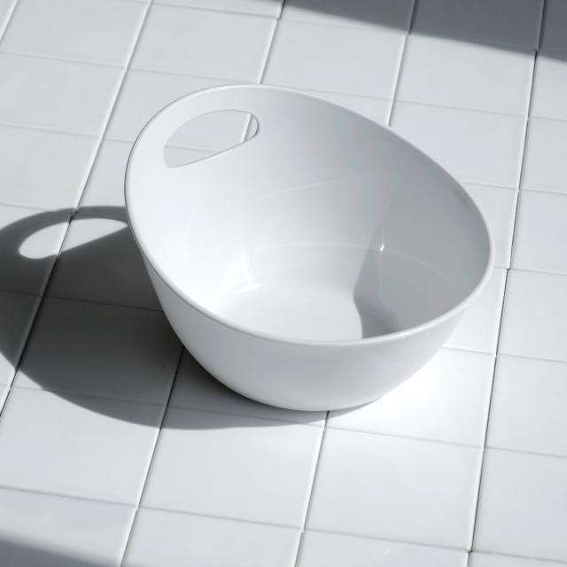 湯おけと手おけの機能が一体になった湯手おけです。お湯を汲む、かける、顔を洗うという一連の動作がこれひとつでできる程よいサイズ感。今までにない使い心地の良さを感じられます。流れるようなカーブが美しく、シンプルで清潔感のあるカラーはバスルームを洗練された空間にしてくれます。
