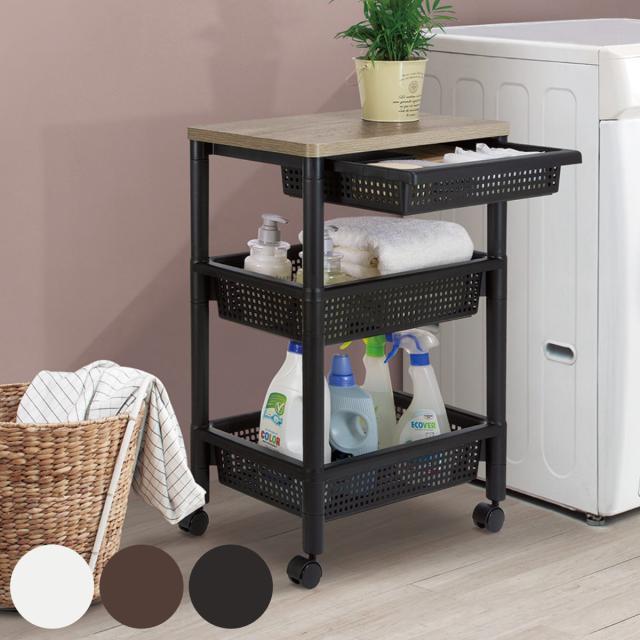 《 LH14537 サニタリーラック キャスター 天板 リビング収納 台所収納 バスケット型ワゴン ワゴンテーブル かご カゴ バスケット 引出し付き サイドテーブル 作業台 可動式 可動式ラック 可動ワゴン 食品収納 食器収納 小物収納 マルチ収納 収納用品 洗面所収納 脱衣所収納 サニタリー収納 台所 洗面所 脱衣所 収納 白 茶色 無地 シンプル シック ナチュラル おすすめ オススメ 便利 役立つ 簡単組立 簡単組み立て 簡単組立て 組立簡単 組み立て簡単 組立て簡単 》