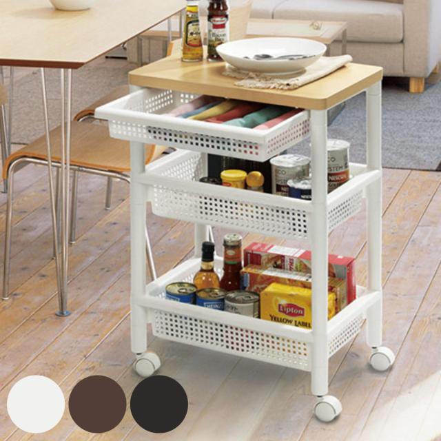 キッチンワゴン 引き出し付き 幅46 奥行30 高さ70 ( キャスター付き 天板付き 隙間収納 キッチン キッチンストッカー キッチンラック キッチンバスケット バスケットワゴン キッチン収納 キッチン収納 キッチン すきま収納)