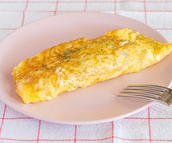 「お餅削り器」で細かく削ったお餅を卵で包めば、中から出てくるとろりとしたお餅がたまらない「餅入りオムレツ」が完成します。1人分の餅入りオムレツは、卵2個にお餅1個分の削ったお餅を使用しています。