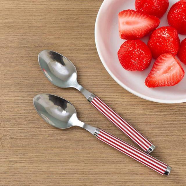 スプーン 小 セット 2本入り ステンレス ストライプ 赤 ( 洋食器 カトラリー ティースプーン デザートスプーン 匙 デザート アイス コーヒー 紅茶 おしゃれ )