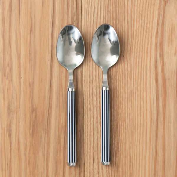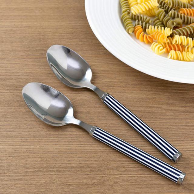 スプーン 大 セット 2本入り ステンレス ストライプ 紺 ( 洋食器 カトラリー 大きい 盛り付け カレー デザート 匙 シチュー パスタ サラダ アイス ケーキ おしゃれ )
