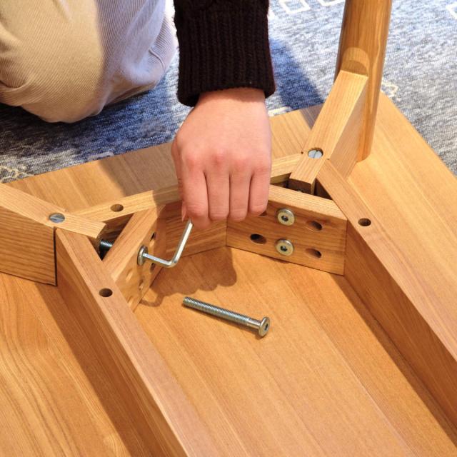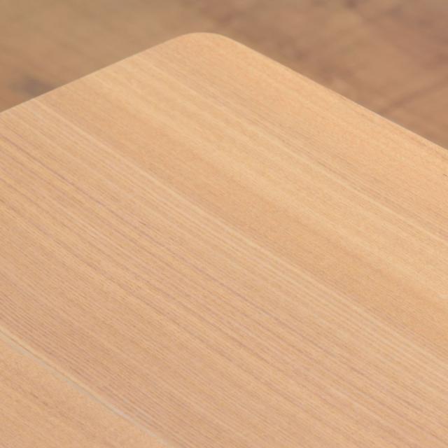 木目が映える天然木アッシュを贅沢に使用しています。また、角を落としハの字に設計することで、優しい印象に仕上がっています。