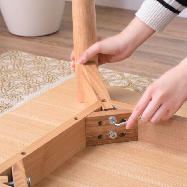 木目が映える天然木アッシュを贅沢に使用しています。また、角を落としハの字に設計することで、優しい印象に仕上がっています。