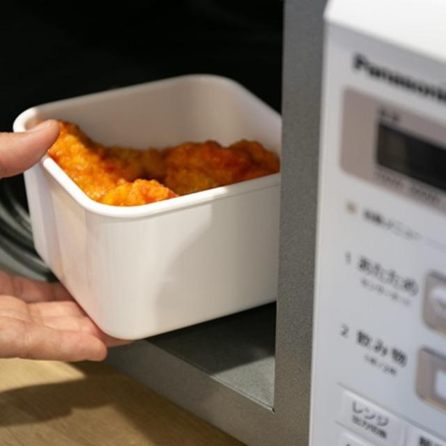 作り置きや、残った食材を保存するのに無駄なく入るスクエアデザインです。食材が映えるホワイトカラーなので、冷蔵庫からそのまま食卓へ。様になるので、移し替える手間もなく、洗い物も減って一石二鳥です。