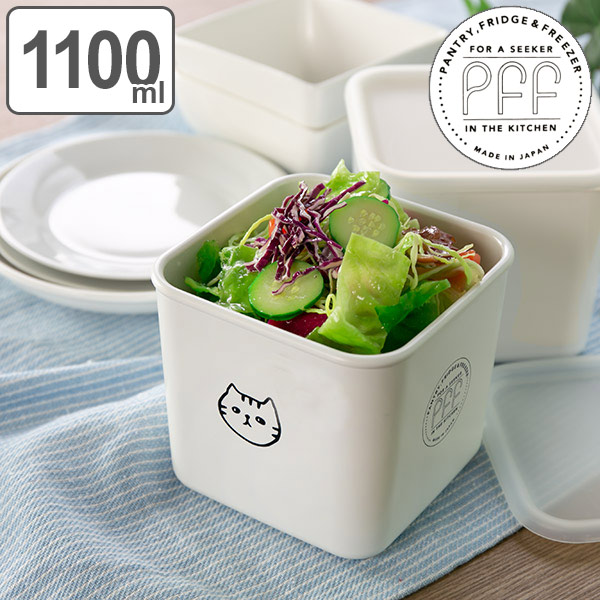 保存容器 450ml 猫柄 角型 PFF NECO スクエアストッカー XS 樹脂製 ( 保存 容器 フードストッカー キャニスター 電子レンジ対応 冷凍庫対応 食洗器対応 ストッカー スタッキング 白 おしゃれ ネコ ねこ 猫 )