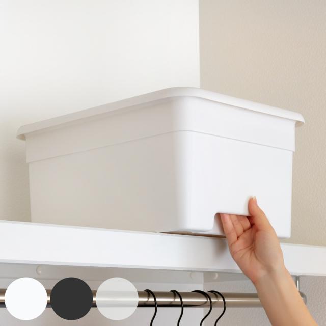 フタ付きなのでホコリが入るのを防ぎ、上に物を乗せる事ができます。しっかり閉まるので、棚への出し入れの際にフタがずれにくく安心です。