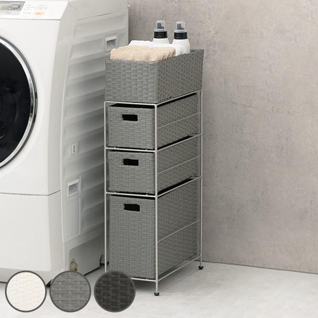 ランドリーチェスト 幅20.5cm 3段 スリムタイプ 引出し 隙間収納 完成品 ( ラタン調 ランドリー チェスト ラック 防水 撥水 収納 ラタン風 洗濯 ランドリーラック 樹脂製 すき間 編みかご )