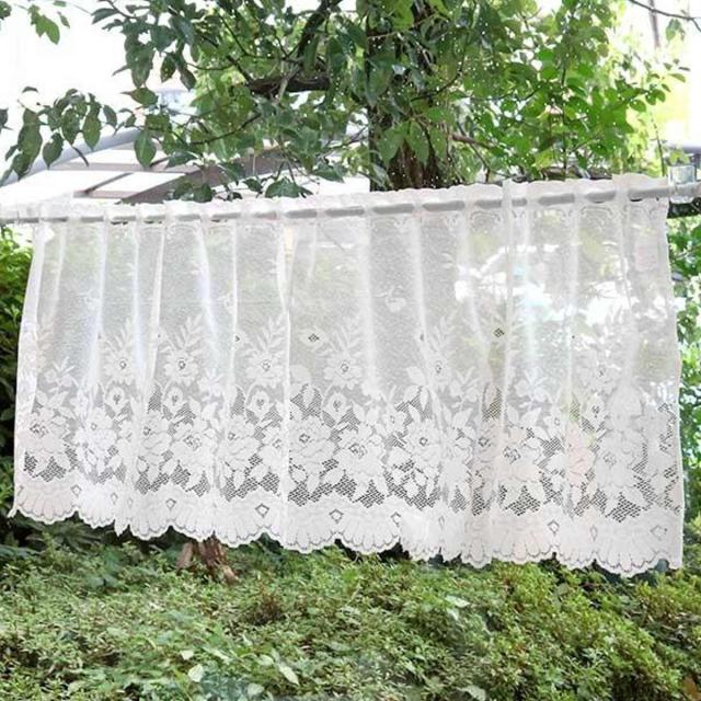 カフェカーテン バラ柄 145×48cm ( カーテン 目隠し レース 窓 ファブリック 洋室 リビング キッチン 子供部屋 小窓 おしゃれ 洗える カットできる )