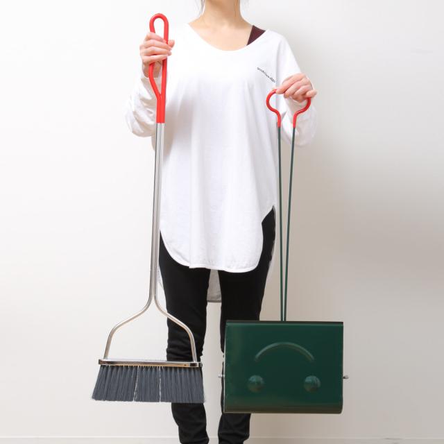 いつでもゴミを笑顔で受け入れてくれる、遊び心のあるほうきとちりとりのセットです。インテリアのアクセントにもなるポップなカラーとかわいいデザインが魅力、使わない時も目の付くところに飾っておきたくなるお掃除アイテムです。