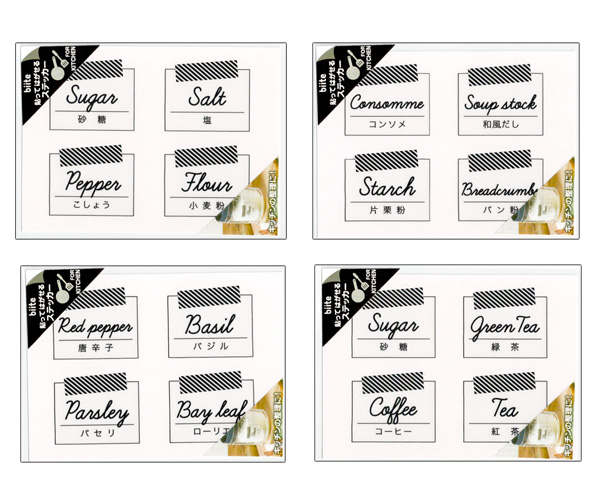 キッチンステッカー 4枚入り 貼ってはがせる 保存容器用シール メモ ( ラベルシール ステッカー シール キッチン スパイスシール スパイスステッカー キッチンシール ボトルラベル スパイスボトル用 調味料用 調味料ラベル )