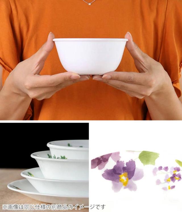 1970年アメリカで誕生したコレールは、世界初の欠け・破損に耐性がある全面積層強化ガラスの食器として、50か国以上のご家庭で愛用されているブランドです。「バイオレットミスト」シリーズは、まるで水彩画のような紫のスミレ柄。主張しすぎずお料理をより一層引き立てます。