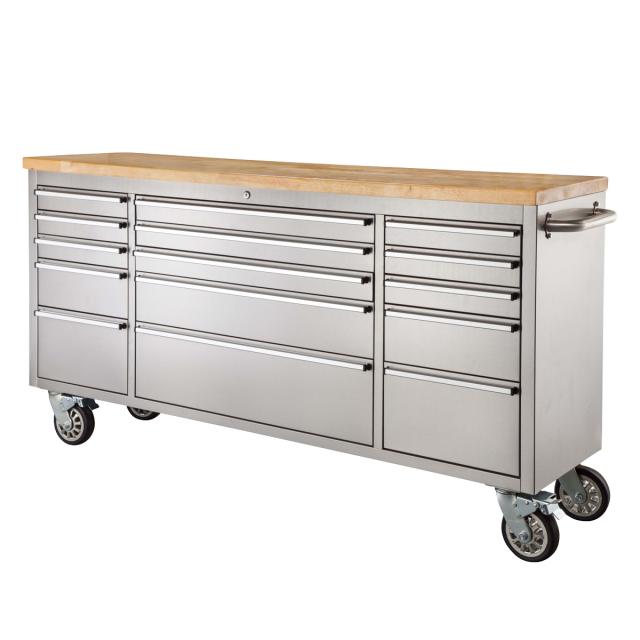 ツールキャビネット 幅199cm ステンレス製 木天板 キャスター付 ( キャビネット ワゴン キッチンワゴン ステンレス 業務用 大型キャスター 鍵 鍵付き 大容量収納 家具 天然木 ホテル レストラン 厨房 キッチン )