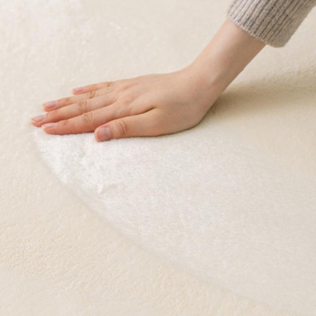 ポリエステル100%のフランネル生地が、まるで泡立てたメレンゲのようにふんわりと滑らかな感触です。ずっと触れていたくなる肌ざわりでお部屋に癒しと安らぎの空間をプラスします。リビングや寝室、子ども部屋など幅広い場所でお使いいただけます。