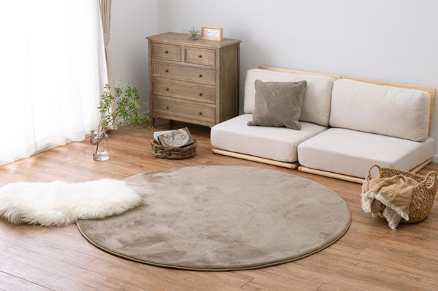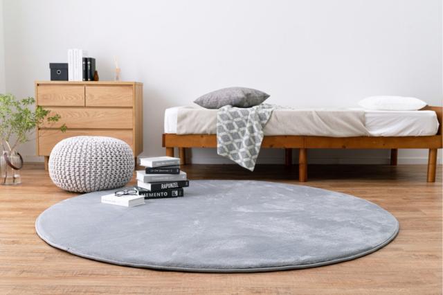 円形のラグはインテリア性が高く、センターラグとしてお部屋を彩ります。8畳のお部屋にちょうどいいサイズで、ソファー前にもおすすめです。