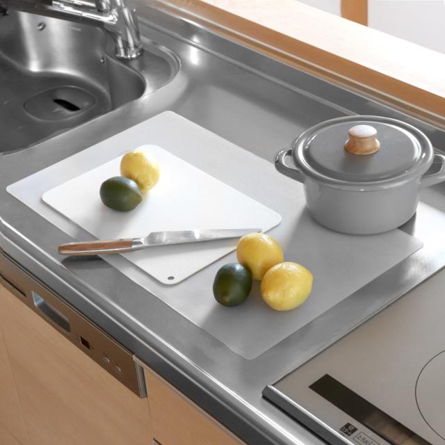 ![]() 水切りができる調理台保護シート | ![]() システムキッチンの耐熱調理台保護シート |