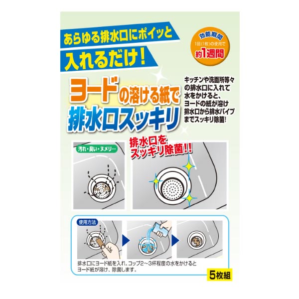 排水口 除菌剤 ヨードde排水口クリーナー 5枚入り ミント香付 排水溝 ヨード ヨウ素 除菌 消臭 ( 排水パイプ 排水管 クリーナー 消臭剤 カビ におい 雑菌 ヌメリ 対策 防止 お風呂 キッチン 掃除 そうじ オフロ おふろ 清掃 排水 )