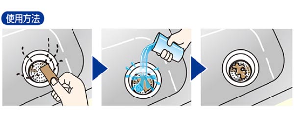●シート状で、排水口に置いて水を流すだけでサッと溶け除菌できます。
