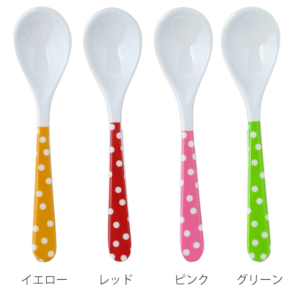 スプーン 同色6本セット メラミンスプーン カラードット イエロー ( メラミン カトラリー ドット 水玉 メラミン製カトラリー 食器 器 子供用 キッズ ベビー かわいい 割れにくい 6本入り 6本 メラミン製 丈夫 軽い )