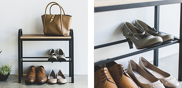 スチールに温かみのある天然木を組み合わせたおしゃれなシューズラックです。