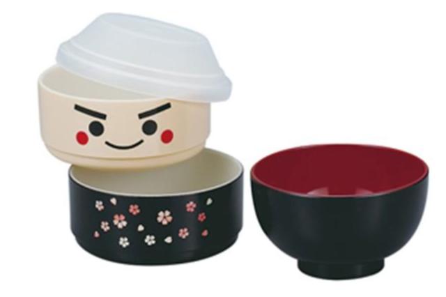 頭が汁椀になる愛嬌のあるお顔のこけし弁当箱