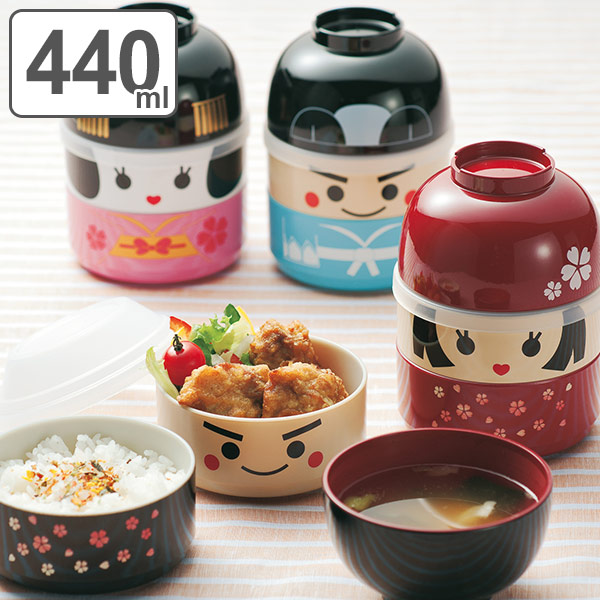 お弁当箱 2段 お椀付き こけし弁当 野球 440ml ランチボックス HAKOYA ( 弁当箱 食洗機対応 レンジ対応 汁椀 味噌汁 二段 レンジOK 食洗機OK 和風 こけし 二段弁当箱 かわいい 汁椀付き 日本製 ハコヤ ふんわり ふわっと )