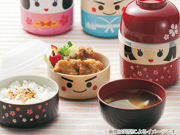 頭が汁椀になる愛嬌のあるお顔のこけし弁当箱