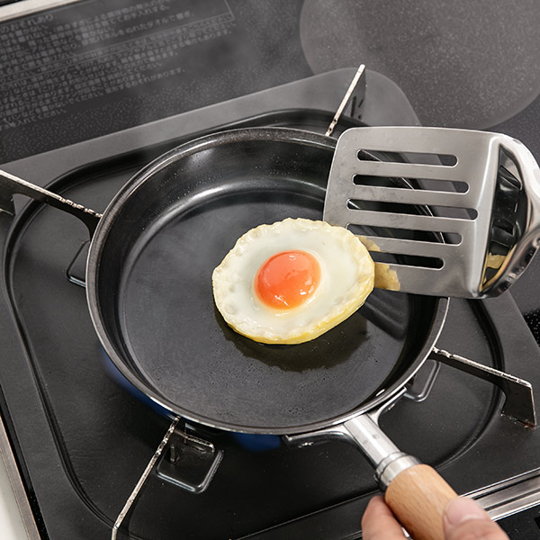 目玉焼きやちょっとしたおかずを作るのに最適な鉄製のフライパンです。1.6mm鋼板を使用しているので、熱が均一に伝わり焼きむらが少ないです。金属ヘラも安心して使えます。