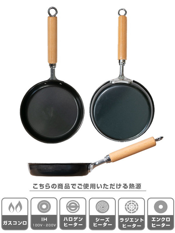 | 備考 | ※空焼き・油ならし不要 ※最初に使用する際は食器用洗剤で洗ってください。 ※業務用熱源で高出力タイプのものは変形の可能性がありますので、おやめください。 |