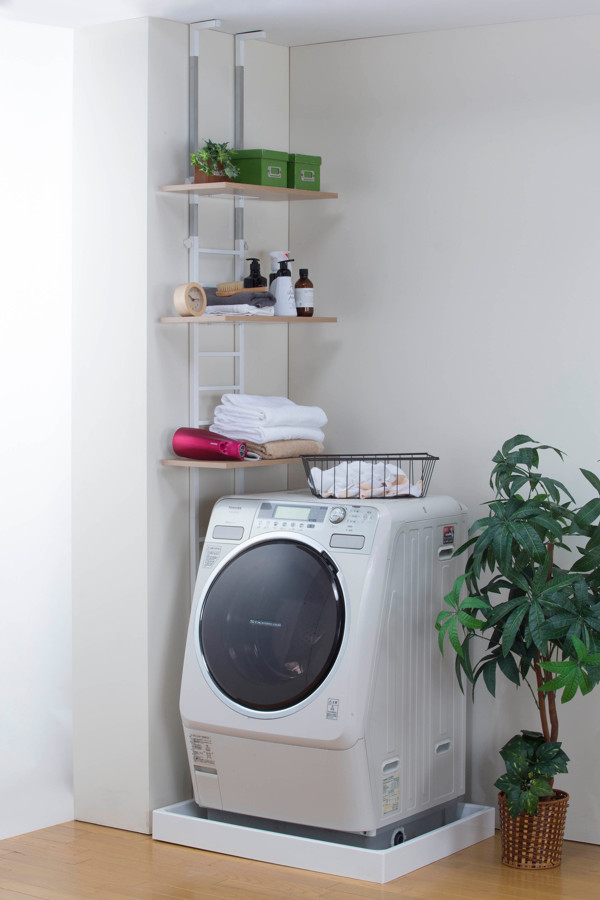 洗濯機を動かさなくても設置可能な突っ張りラック