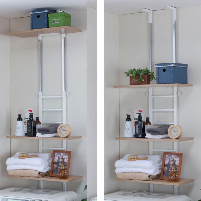 ランドリーラック 突っ張り 棚板3枚タイプ 幅55cm 高さ207〜264cm ( ラック 収納 洗濯機ラック 壁面収納 つっぱり すき間収納 3段 縦型 ランドリー収納 突っ張り棚 洗濯機 洗濯機横 隙間 ランドリー おしゃれ 棚板調整 ドラム式 )