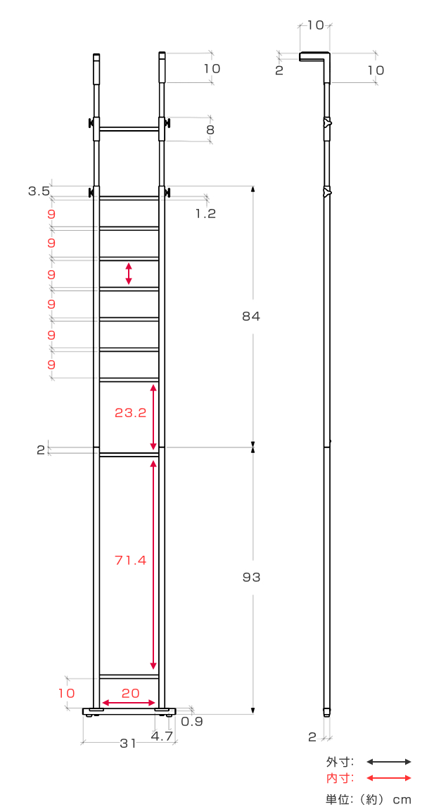 | 材質 | フレーム:スチール(粉体塗装)、棚板:塩化ビニル化粧繊維版 |
