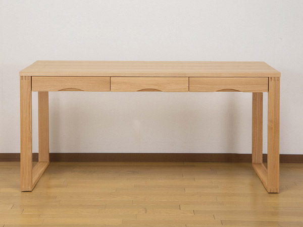 タモ木材の美しい木目と、シンプルな外観が魅力の木製デスクです。あたたかい雰囲気で、使う人や空間を選ばず、長くご愛用いただけます。