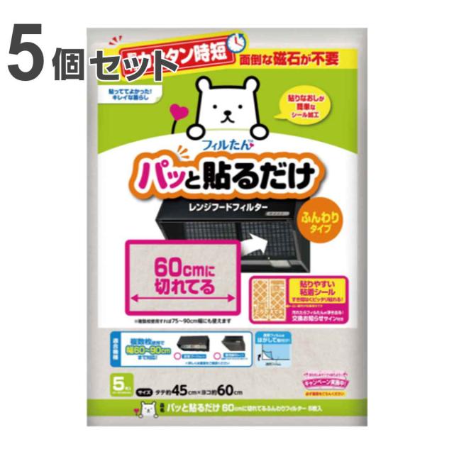 レンジフードフィルター 60cmに切れてるパッと貼るだけ換気扇フィルター 5枚入 5個セット ( 日本製 レンジフィルター レンジフードカバー 換気扇フィルター 換気扇カバー フィルター 換気扇 ワンタッチ )