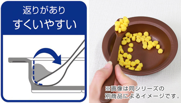 返りがあってすくいやすく、食べ物がこぼれにくいです。
