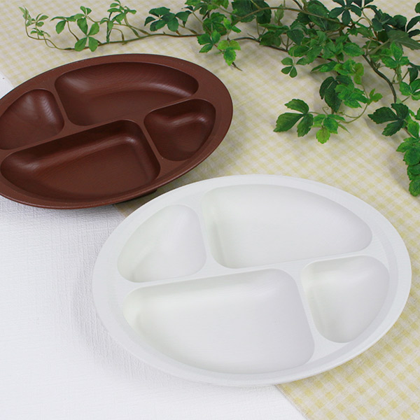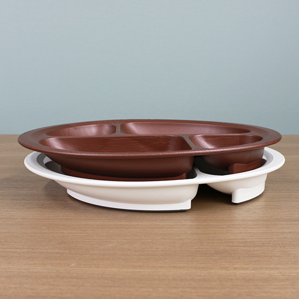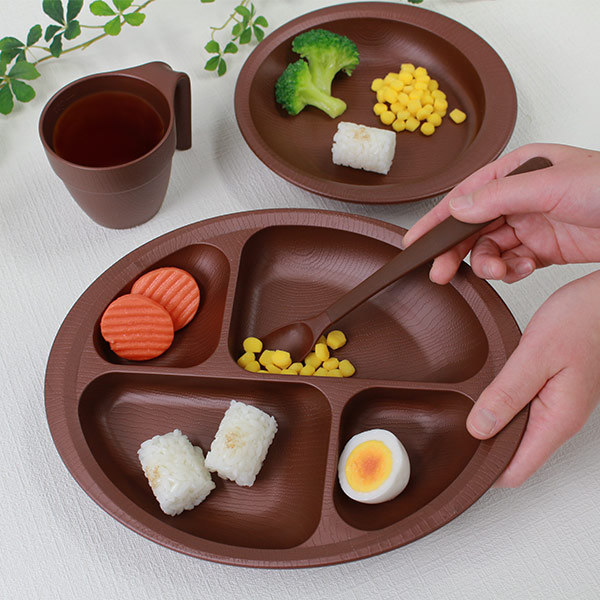 プレート 28cm すくいやすい 仕切り皿 ランチプレート 木製風 介護 食器 プラスチック製 日本製 ( 食洗機対応 電子レンジ対応 深皿 仕切り プラスチック 木目調 介護用 ユニバーサルデザイン 介護用品 割れにくい 滑り止め )