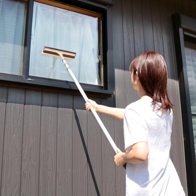 窓ガラスの掃除にはワイパーを使用すると拭き残しや水あとが残らず、きれいに仕上げることができます。こちらのワイパーの拭き幅は約33cm。大きな窓ガラスのお掃除に最適です。