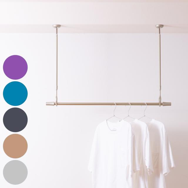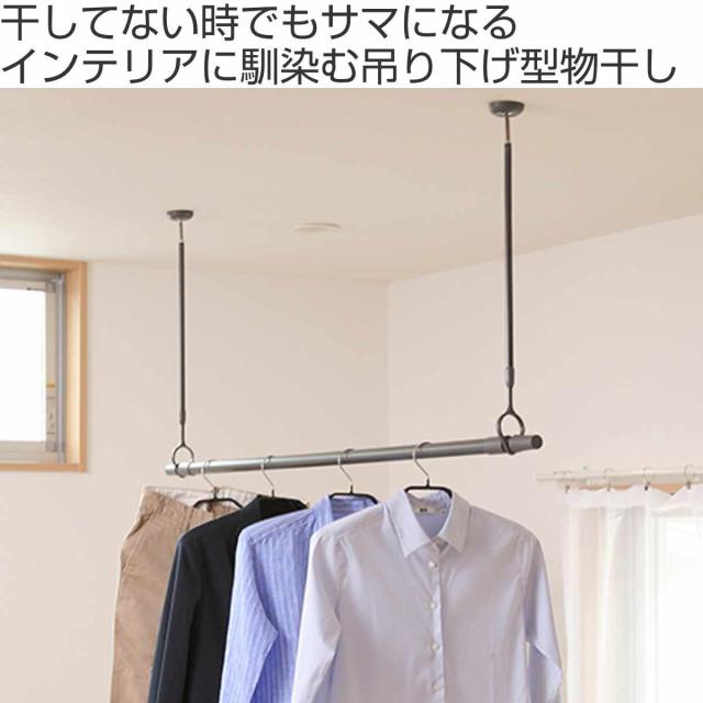 室内物干しセット ドライウェーブ 吊り下げ金具×2 伸縮物干し竿×1 ( DRY・WAVE 物干し ポール&竿セット 伸縮 日本製 室内物干し 天井 吊り下げ金具 竿 セット コンパクト 収納 壁収納 インテリア デザイン性 )