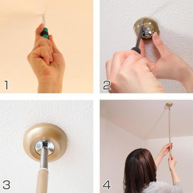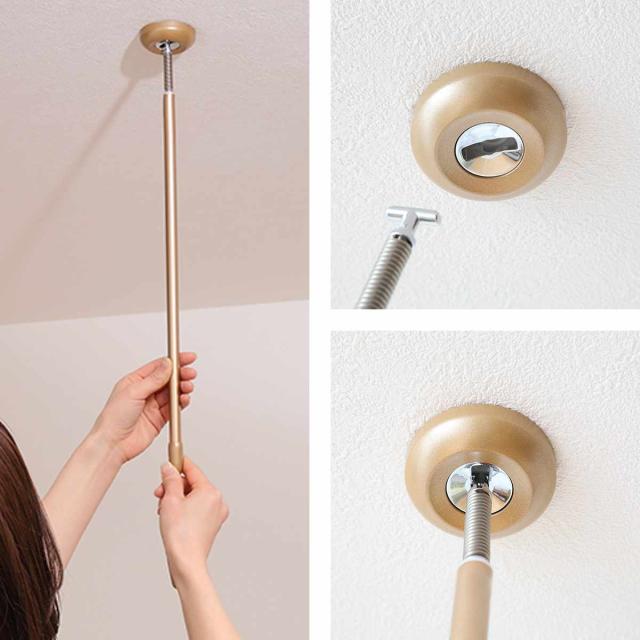 クルッと回すだけで、簡単に取り付け、取り外しができるので、必要な時にすぐに物干しスペースを作ることができます。
