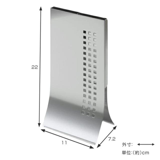 | サイズ | 約 幅11×奥行7.2×高さ22(cm) 包丁収納部(2ヶ所):約 幅5×奥行0.8(cm) |