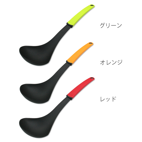●フライパンや鍋を傷つけにくいフッ素樹脂コーティングしたナイロン製のお玉です。