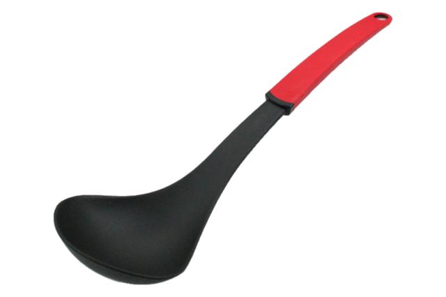 お鍋のふちまでしっかりすくえるナイロン製お玉