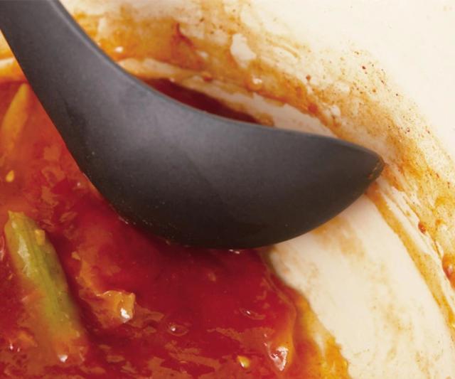 ●鍋の底に沿って、しっかりすくえる形状です。