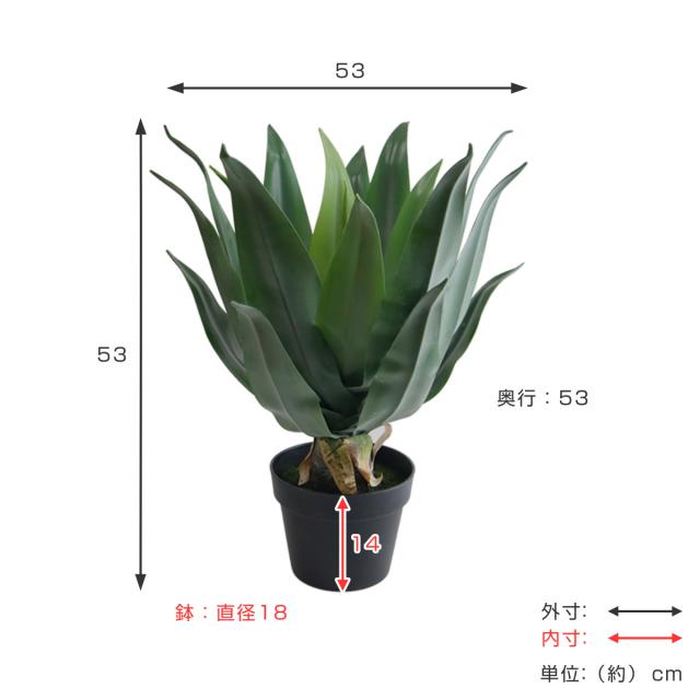 人工観葉植物 アガベ 53cm フェイクグリーン 造花 ( 観葉植物 フェイク 人工植物 アートグリーン 緑 グリーン 癒し リラックス 植木 樹木 人工 枯れない 水やり不要 簡単 おしゃれ インテリア 飾り プランター )