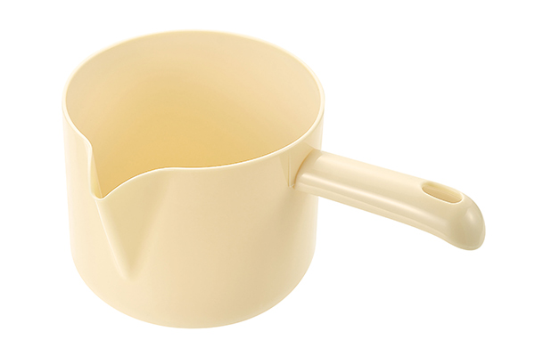しっかり握れるハンドル付きなのでたっぷり生地が入っていても注ぎやすいです。一体成型で隅々までキレイに洗いやすく食洗機対応なのでいつも清潔な状態を保てます。